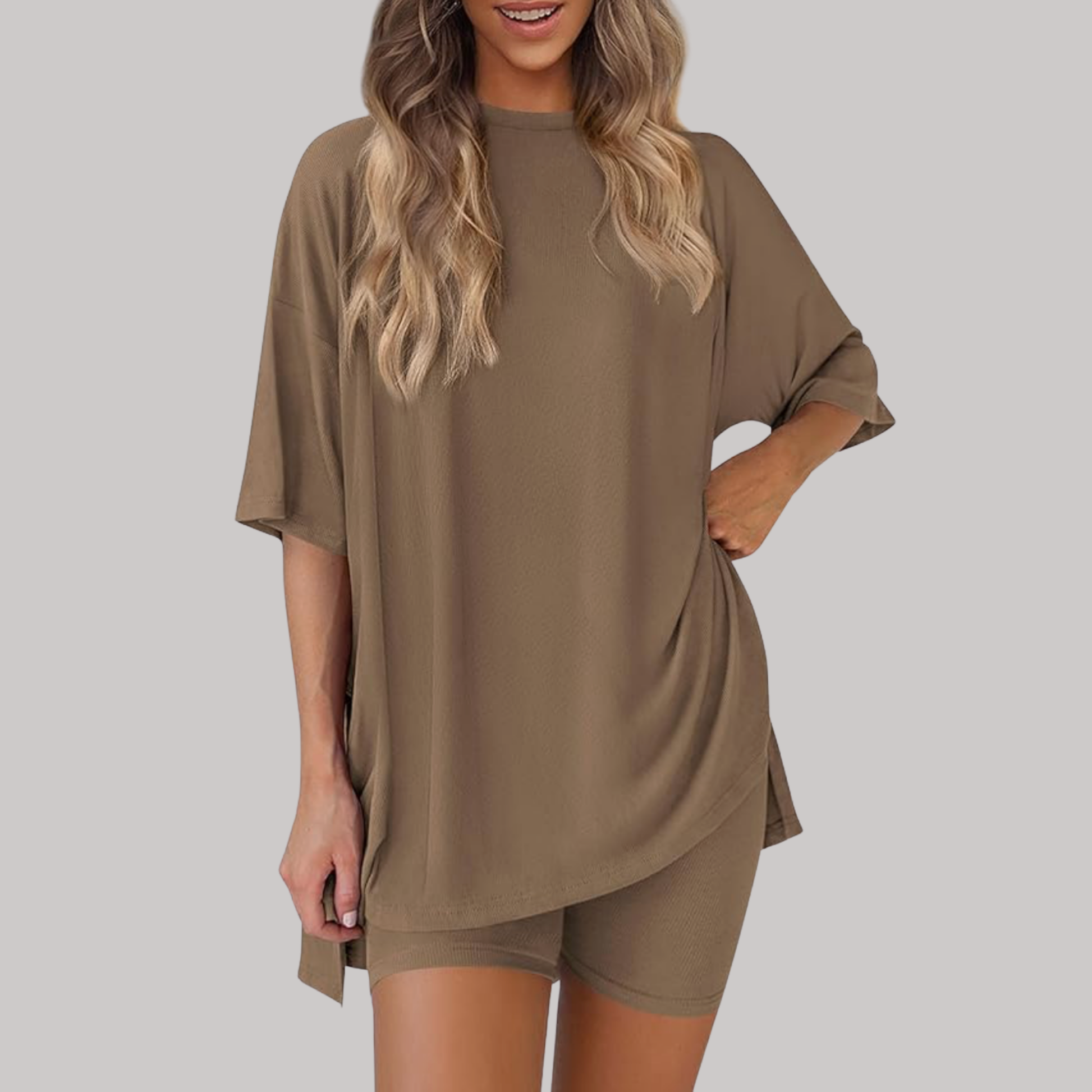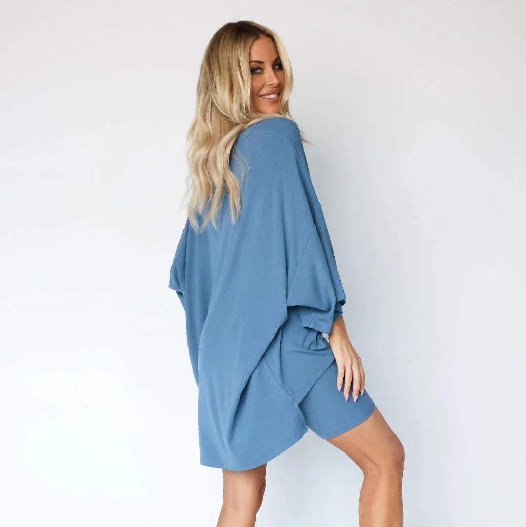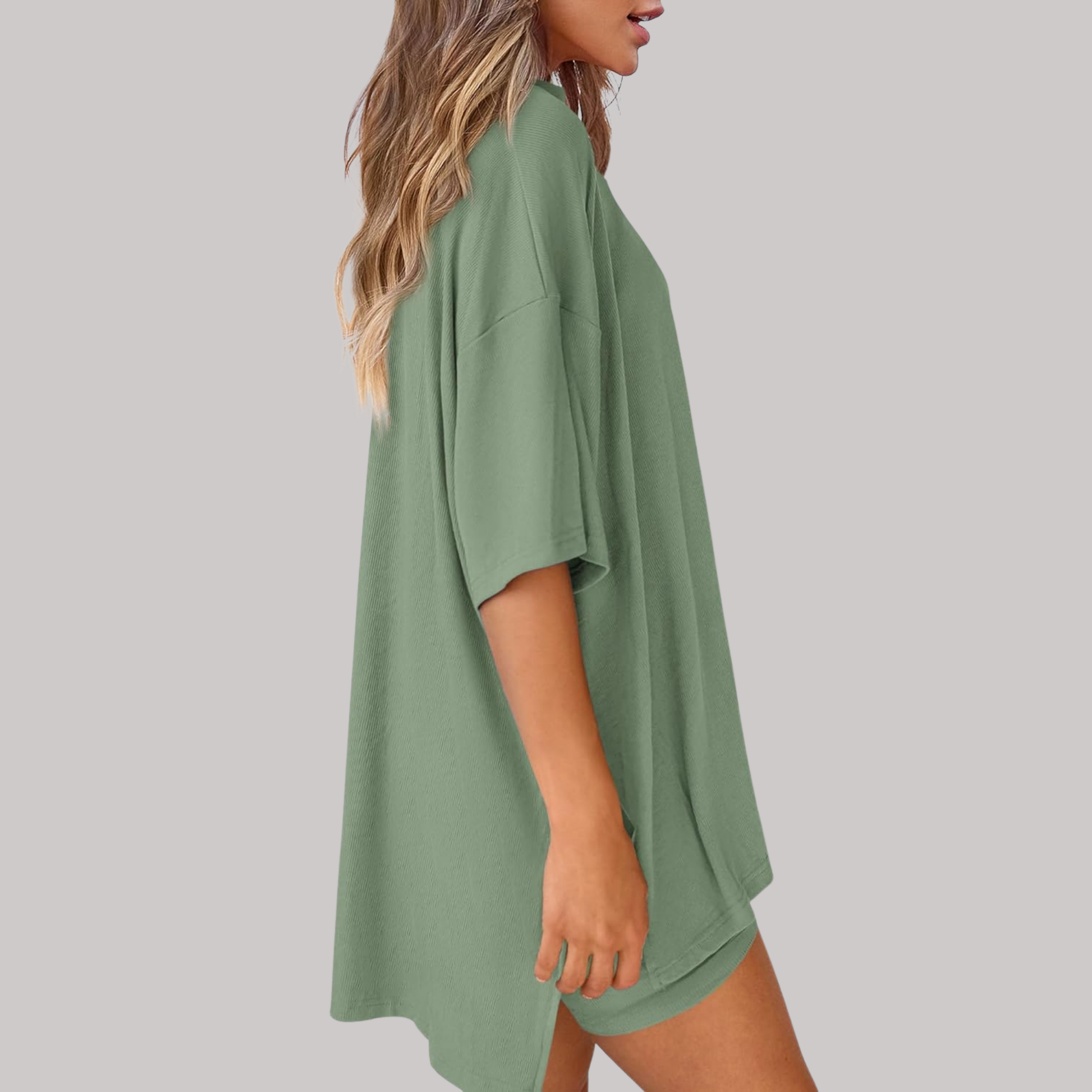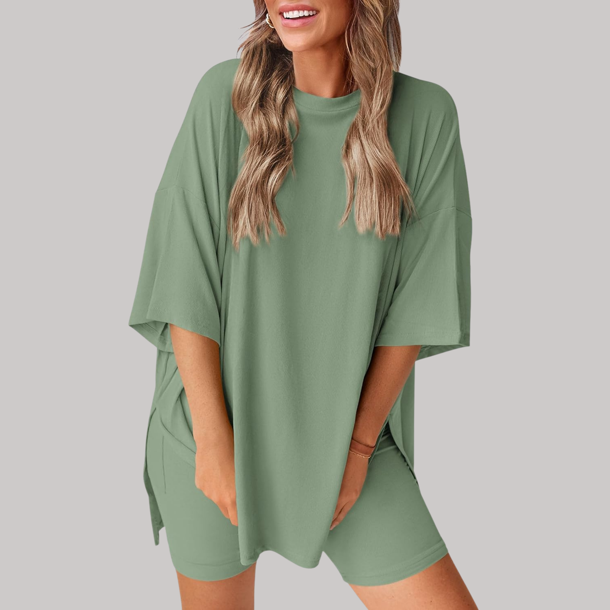 Slip into effortless style with this oversized two-piece lounge set — the perfect blend of cozy and chic. Soft, breathable fabric keeps you cool and comfy, while the relaxed fit and flattering high-waist shorts make it easy to look put together without even trying. Whether you’re traveling, grabbing coffee, or just unwinding at home, this set is your new go-to for feeling good and looking effortlessly stylish.