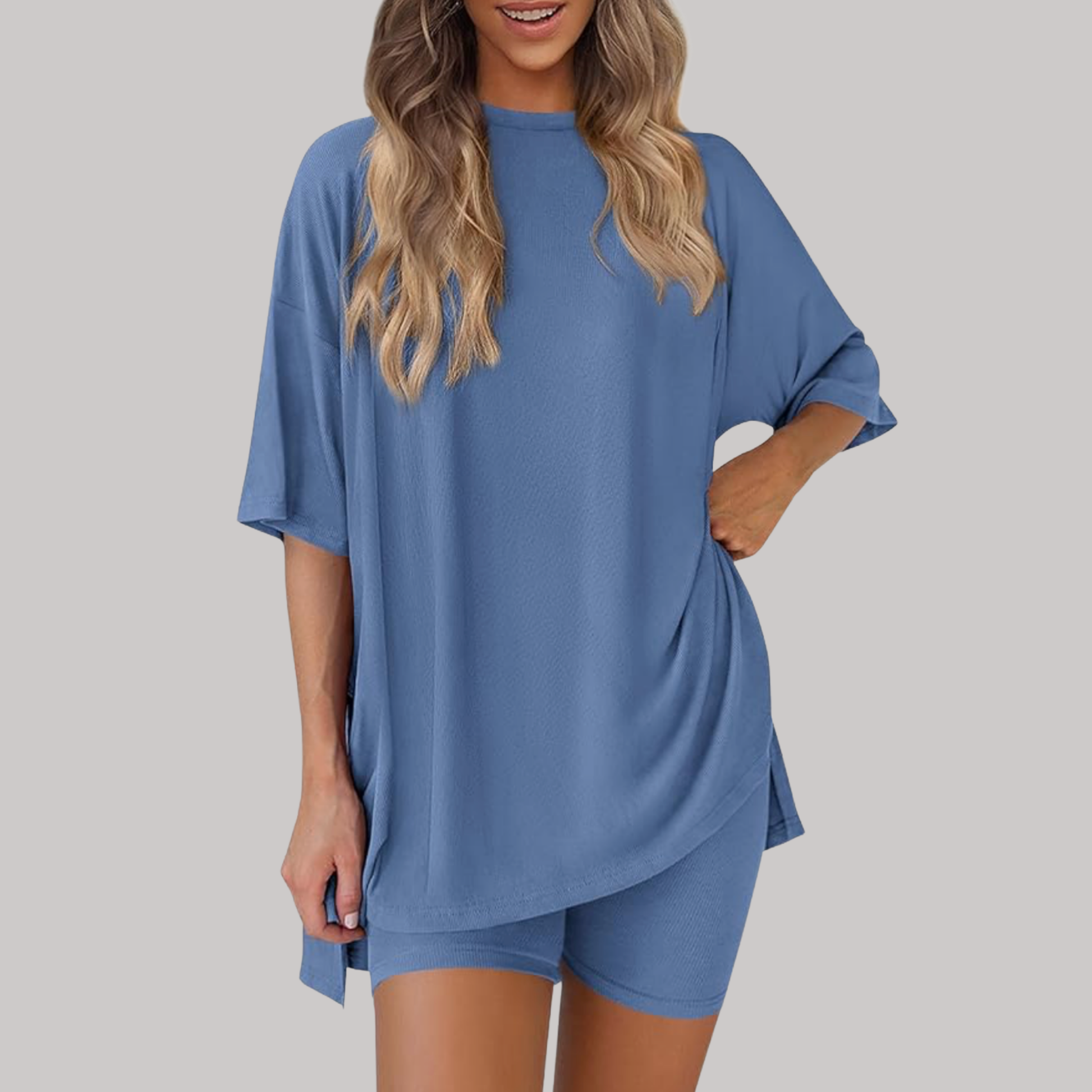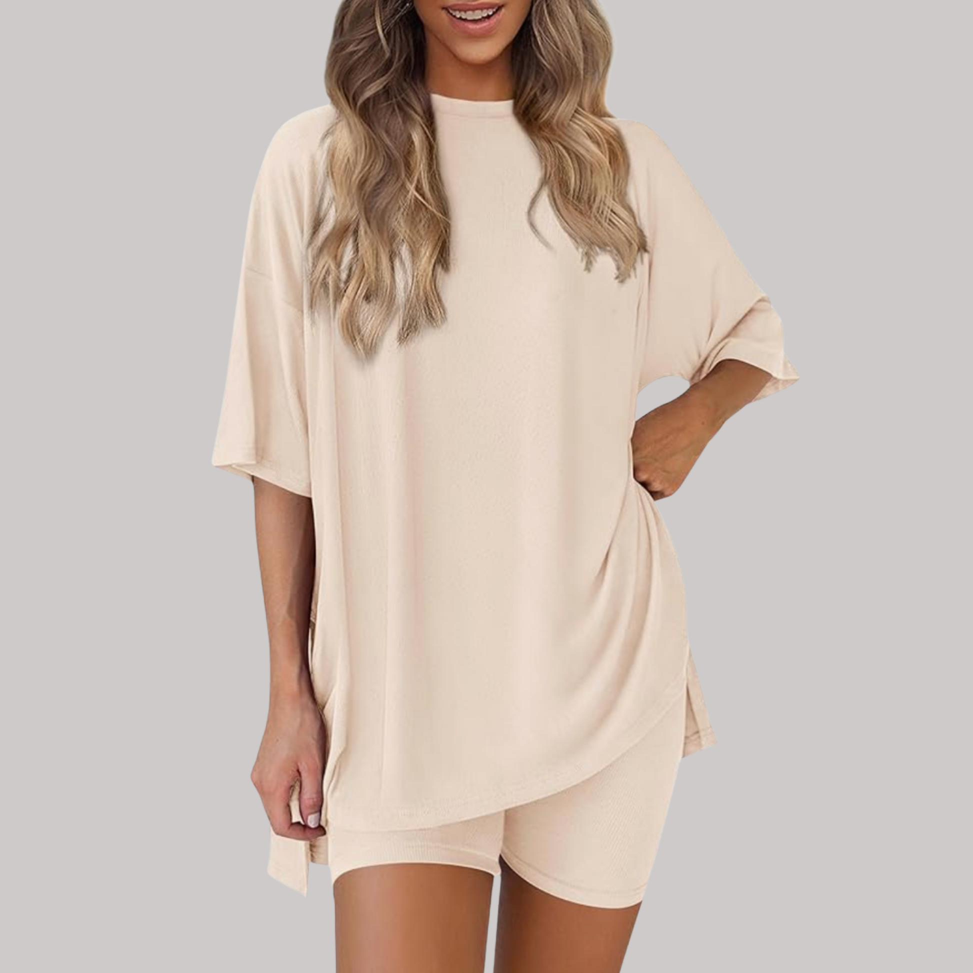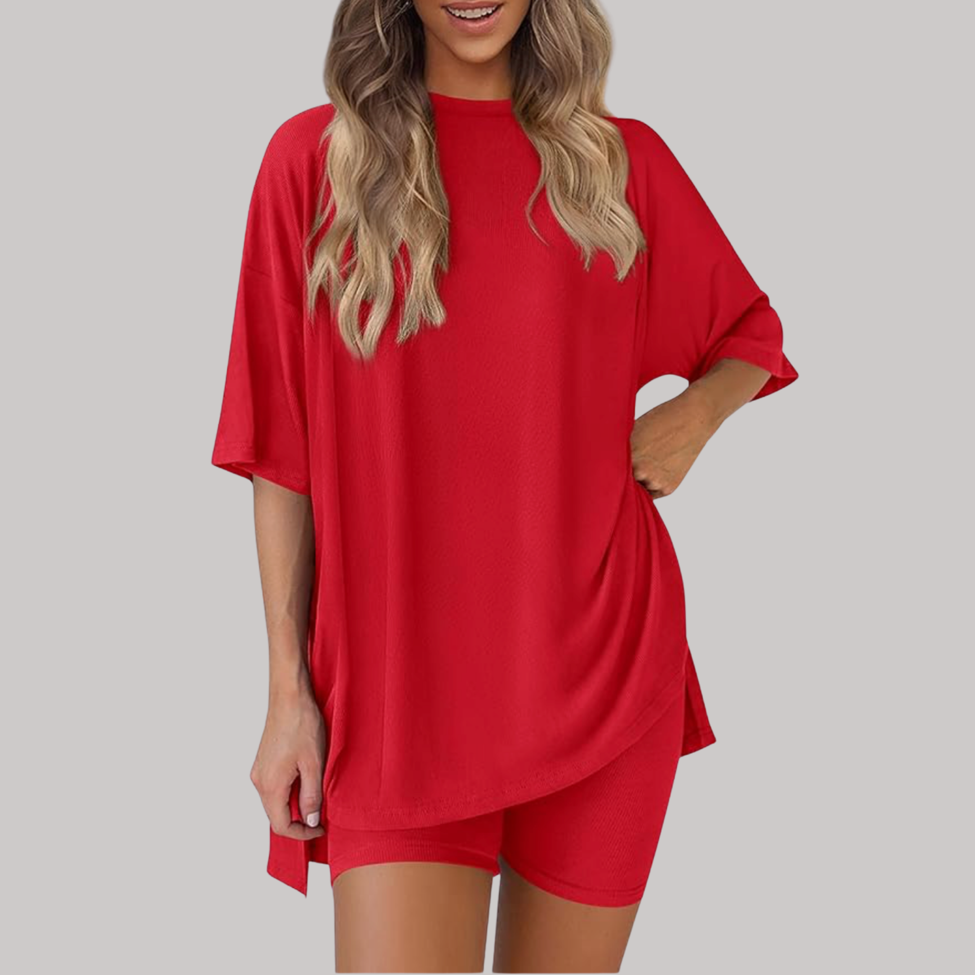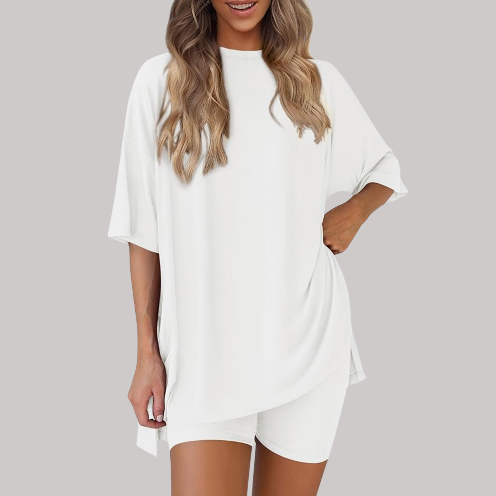 Slip into effortless style with this oversized two-piece lounge set — the perfect blend of cozy and chic. Soft, breathable fabric keeps you cool and comfy, while the relaxed fit and flattering high-waist shorts make it easy to look put together without even trying. Whether you’re traveling, grabbing coffee, or just unwinding at home, this set is your new go-to for feeling good and looking effortlessly stylish.